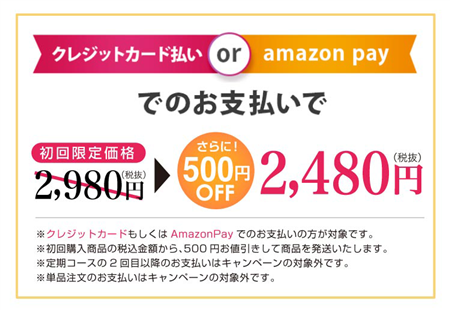 初回75%OFFの2,980円で、クレジット・amazon payでの支払いで更に500円OFFになりますよ。